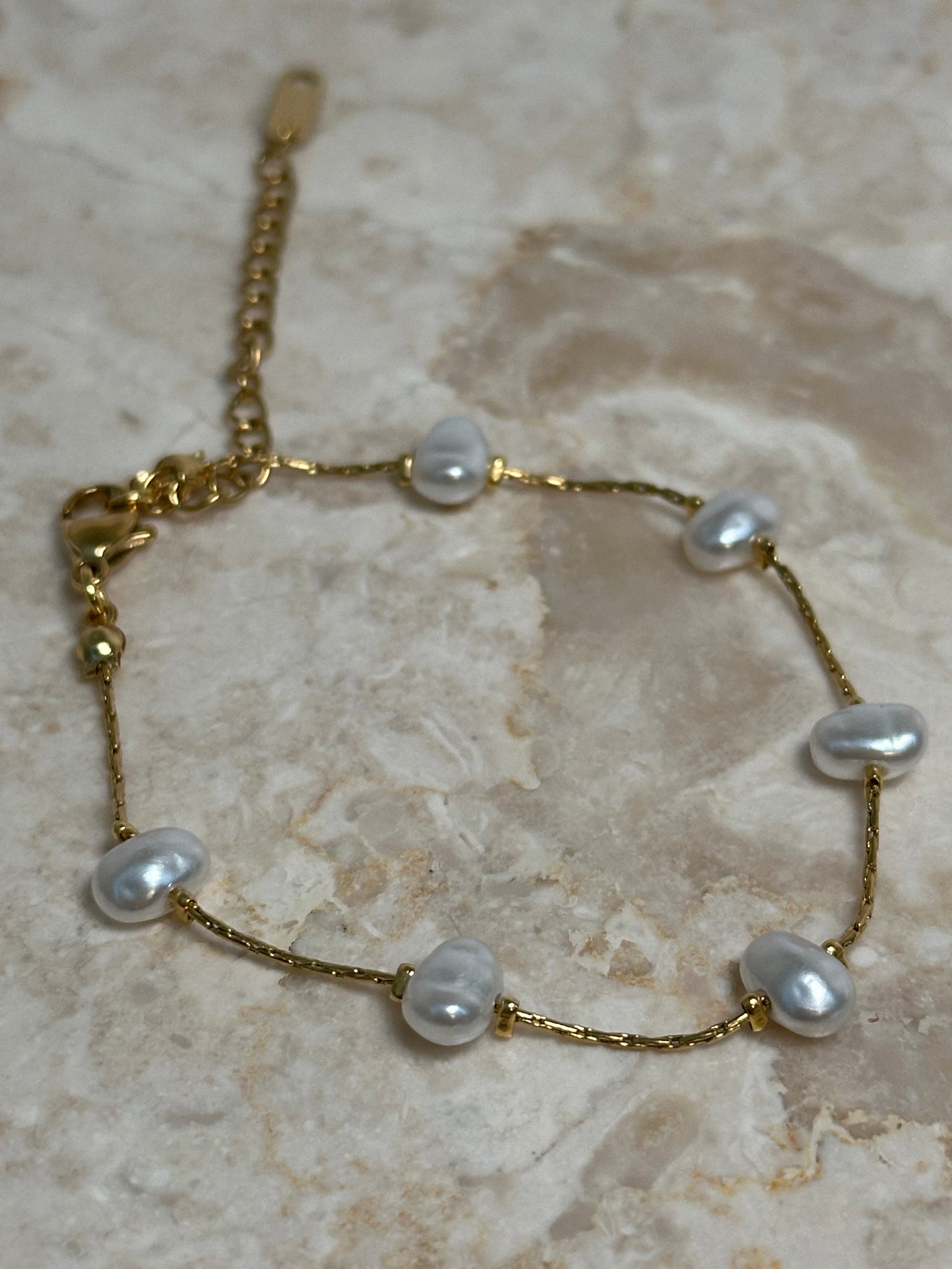 Freshwater Pearl & 18K Gold Beaded Bracelet - Waterproof& Hypoallergenic