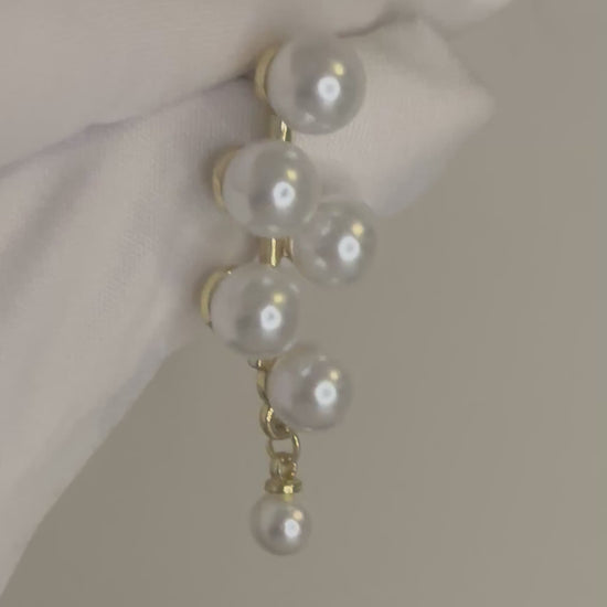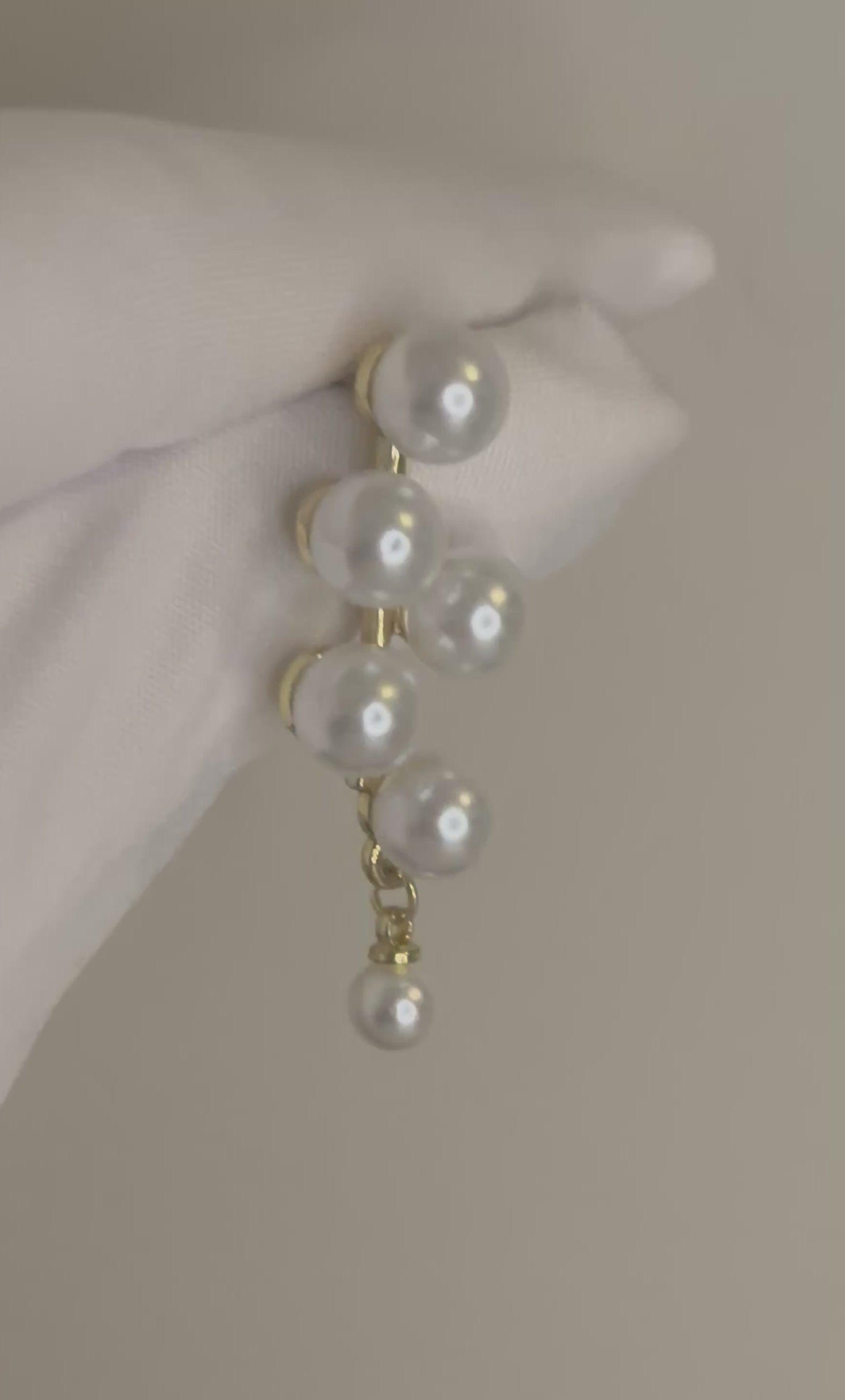 A modern expression of timeless elegance. The Luna Cascade Pearl Earrings feature luminous pearls gracefully aligned along a sleek gold silhouette — a perfect balance of classic sophistication and contemporary design. Each pearl catches the light beautifully, adding a subtle glow to your look from day to night.
