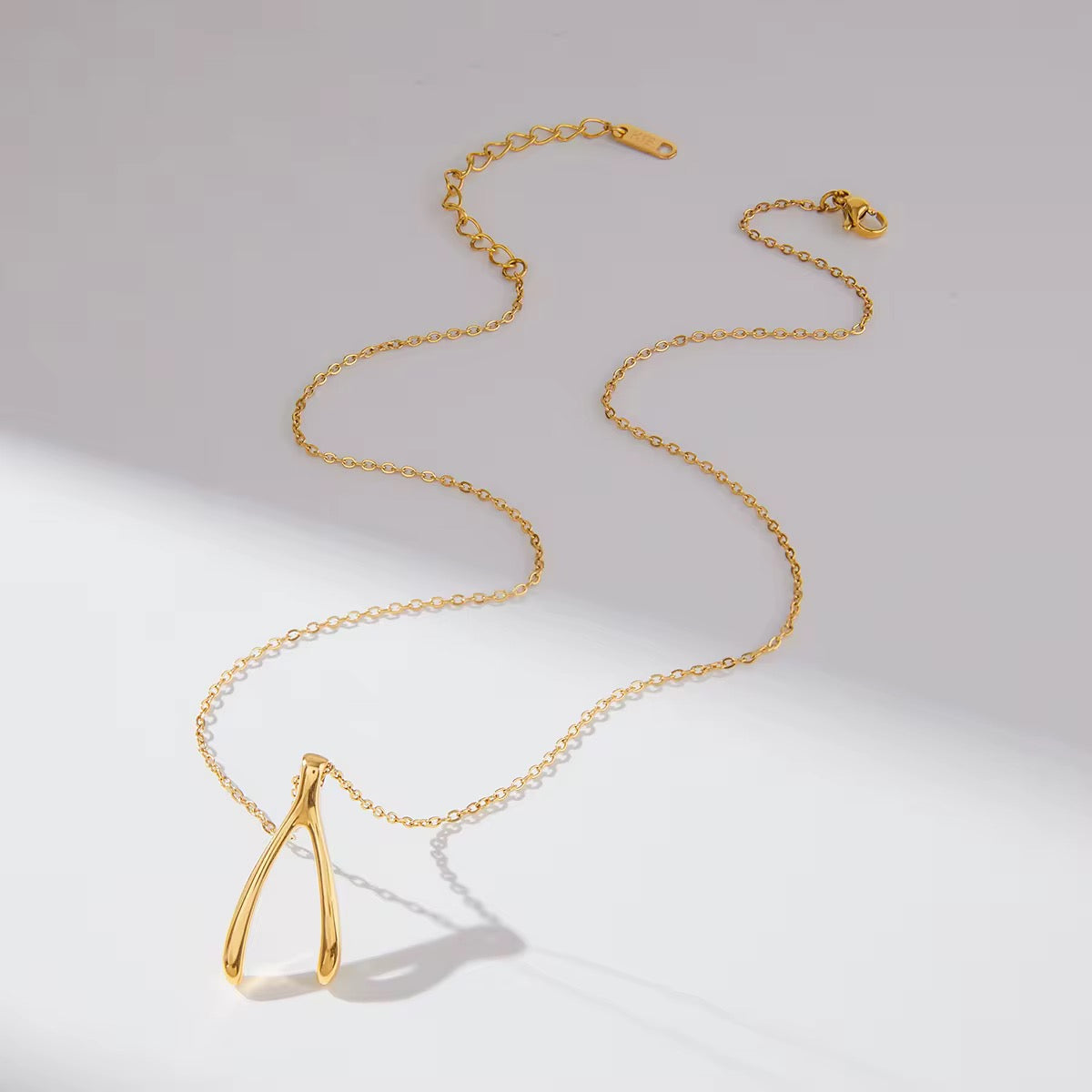 Wishbone Pendant Necklace - Waterproof 18K GoldPlated Stainless Steel