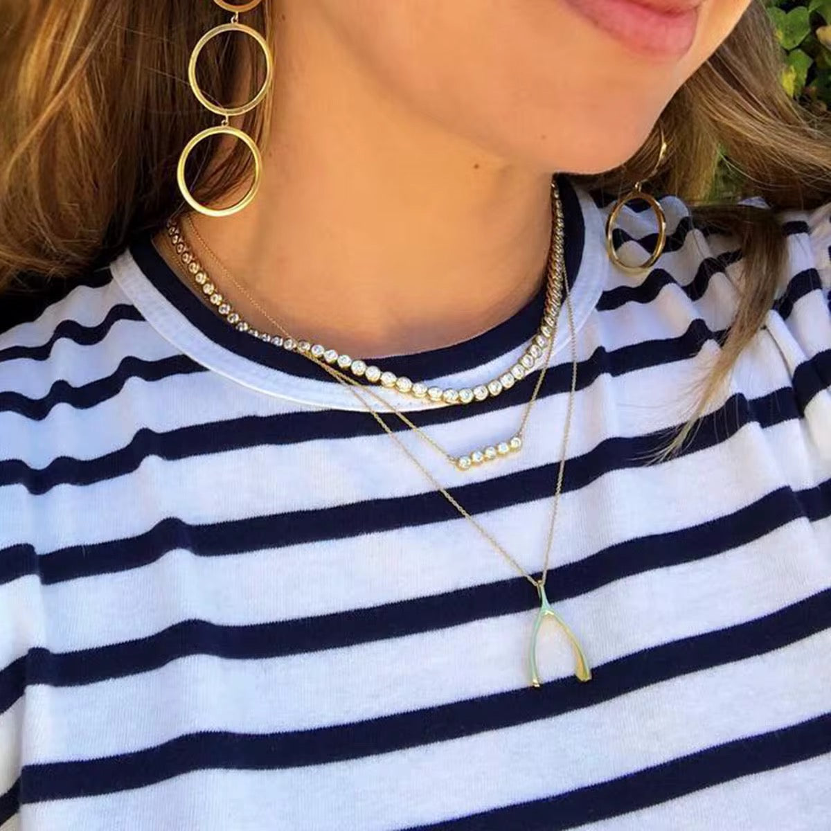 - Adjustable chain for the perfect neckline fit